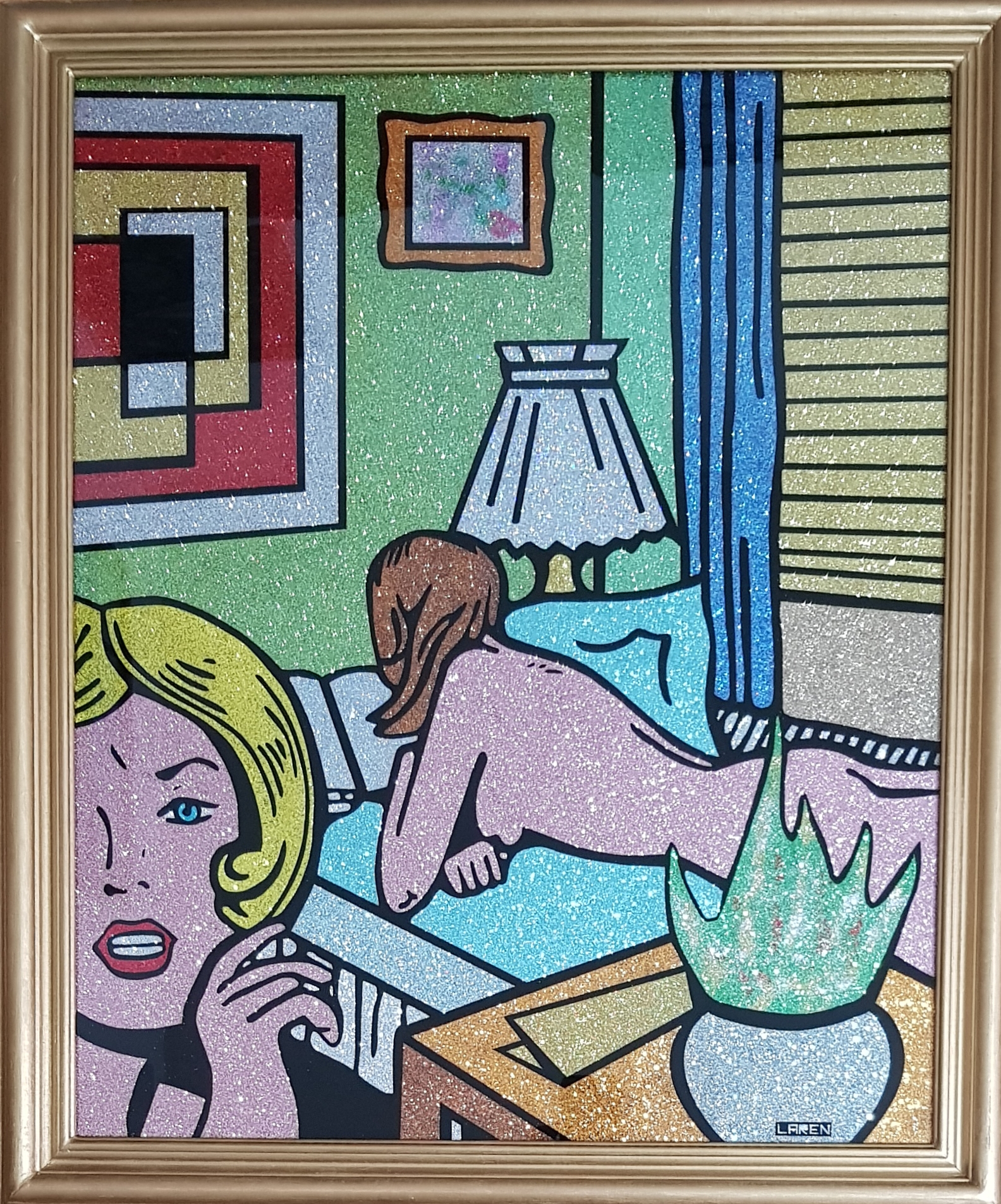 Benito Laren tiene una particular técnica de pintura sobre vidrio permite darle a sus cuadros varias dimensiones. Elaboró una técnica particular, a la que llamó “Pop Oh Art”.