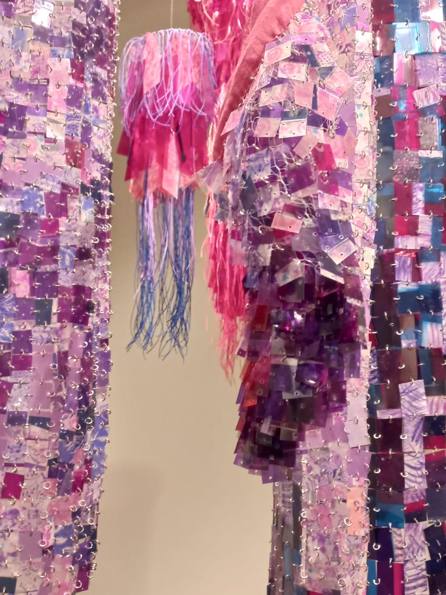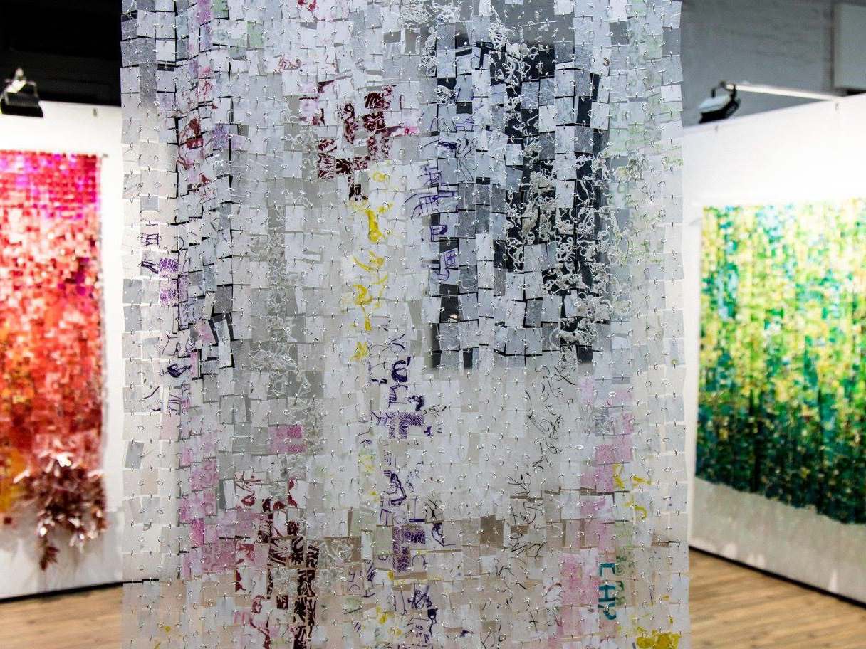 En su recorrido por la tierra, el aire, el agua y el fuego, María Victoria Silva elige viajar con la luz; y de las múltiples formas en la que los artistas hacen de la luz su lenguaje, ella elije trabajar con la transparencia y colores.