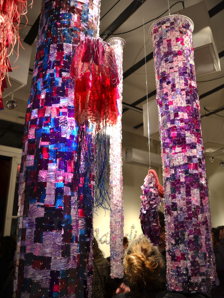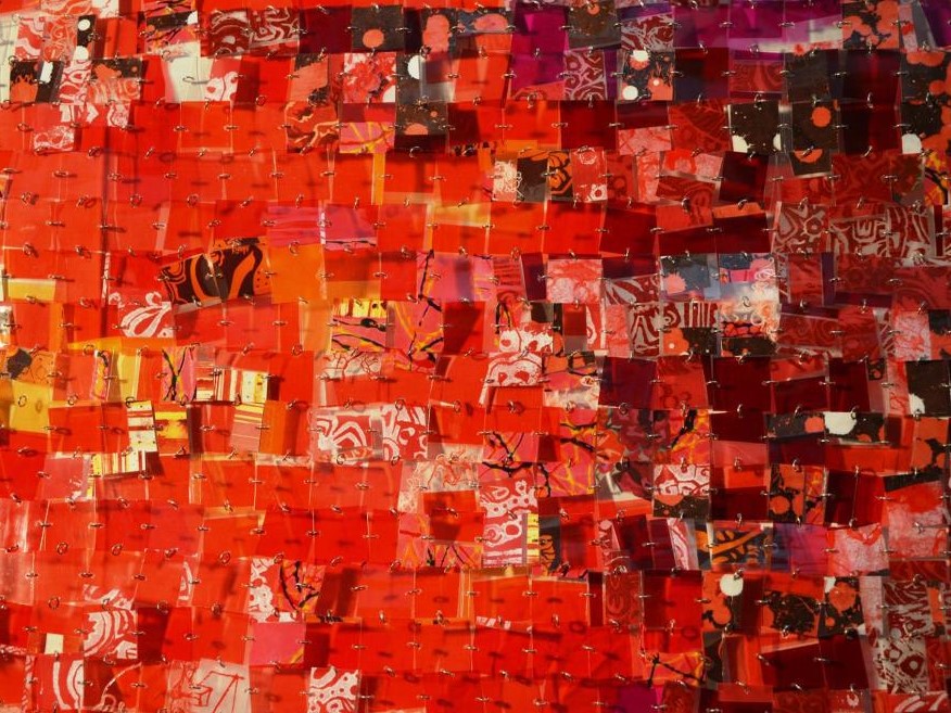 Valiéndose de toda una variedad de recursos plásticos, que confirman su oficio y su investigación estética, incluye en sus texturas,