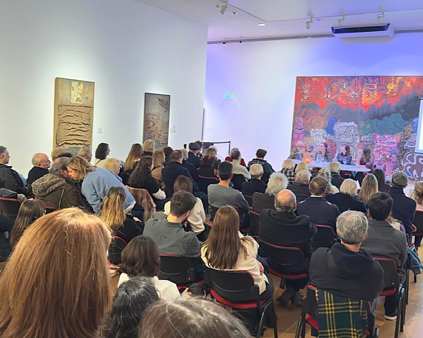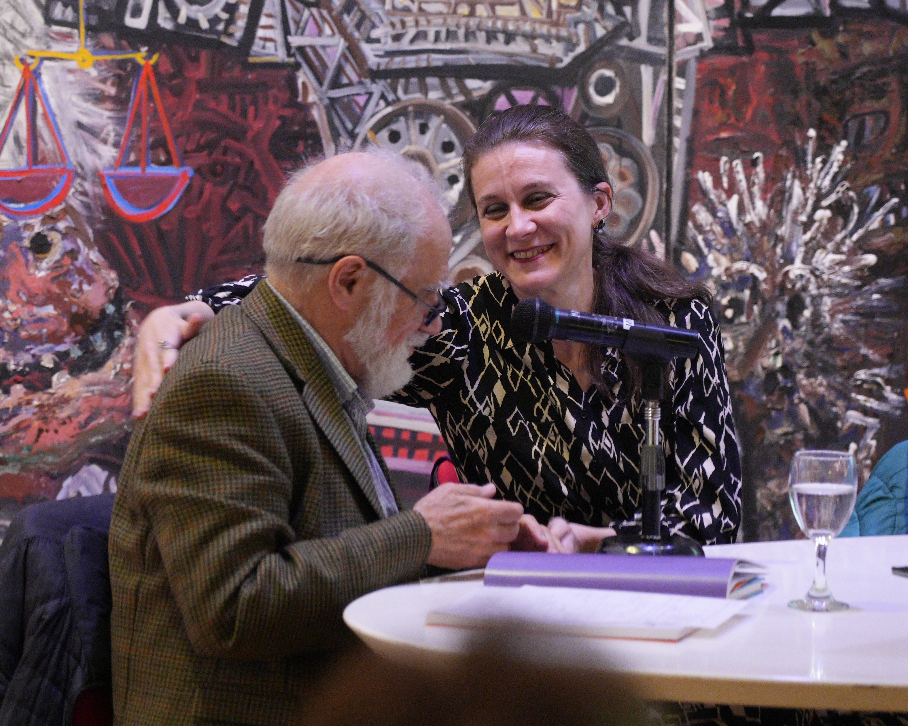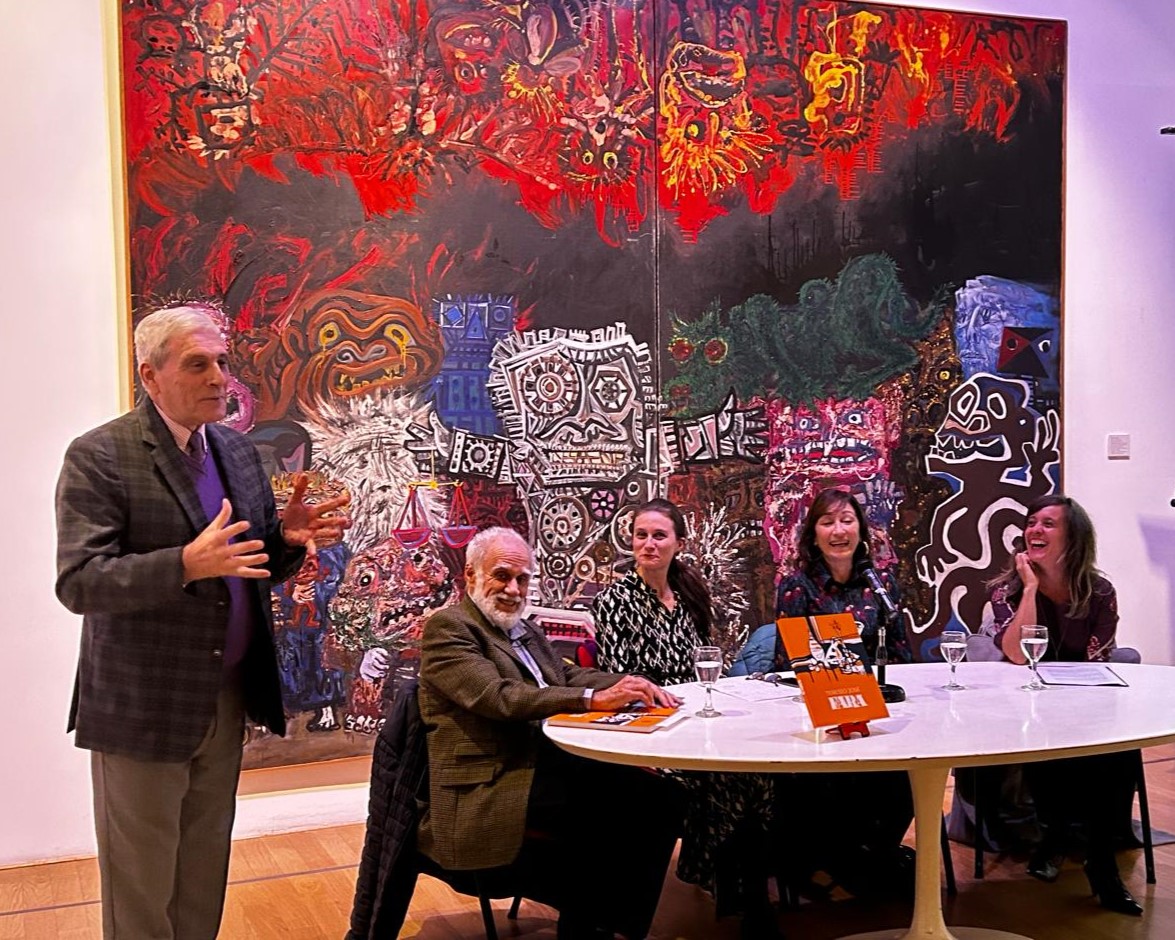 Participaron en la mesa de presentación el ensayista e historiador de arte argentino José Emilio Burucúa, Marta Penhos, Historiadora del arte, docente e investigadora, y Catalina Fara, hija del pintor.