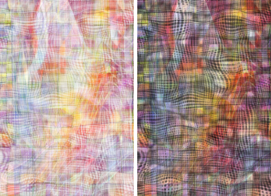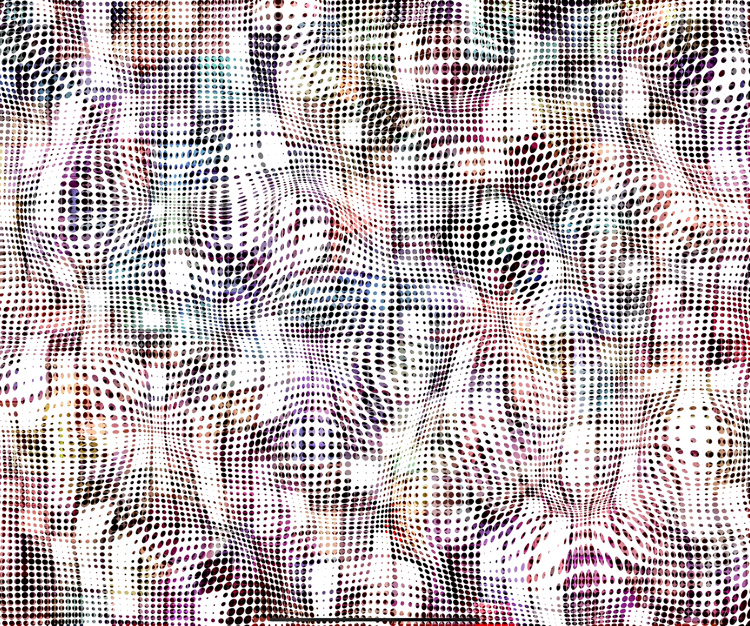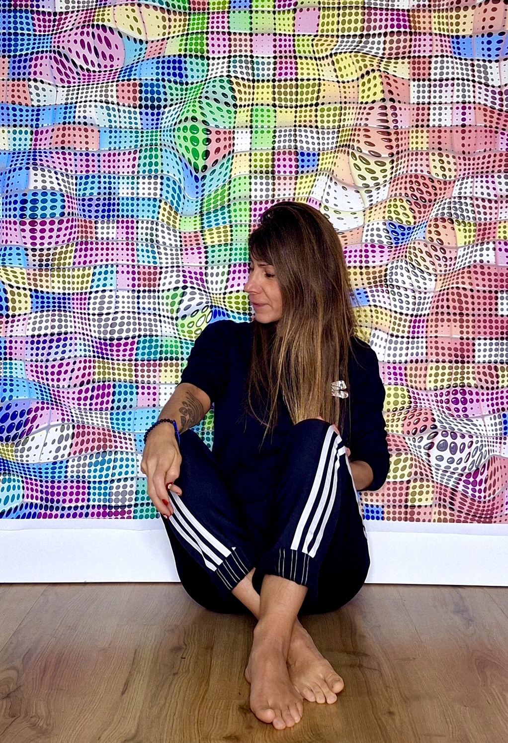 Se destaca por la mezcla entre la geometría cinética digital (evolución) con el dibujo y el color. Crea «formas contenidas de movimiento.»