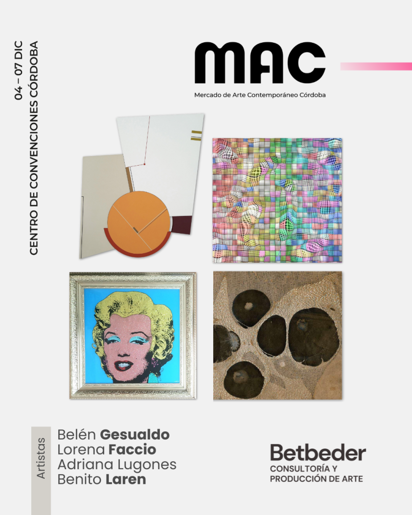 Del 4 al 7 de diciembre Betbeder · Consultoría y Producción de Arte participa en la edición 2025 del Mercado de Arte Contemporáneo Córdoba (MAC), una de las plataformas más relevantes del país para el encuentro entre artistas, galerías, gestores culturales e instituciones.