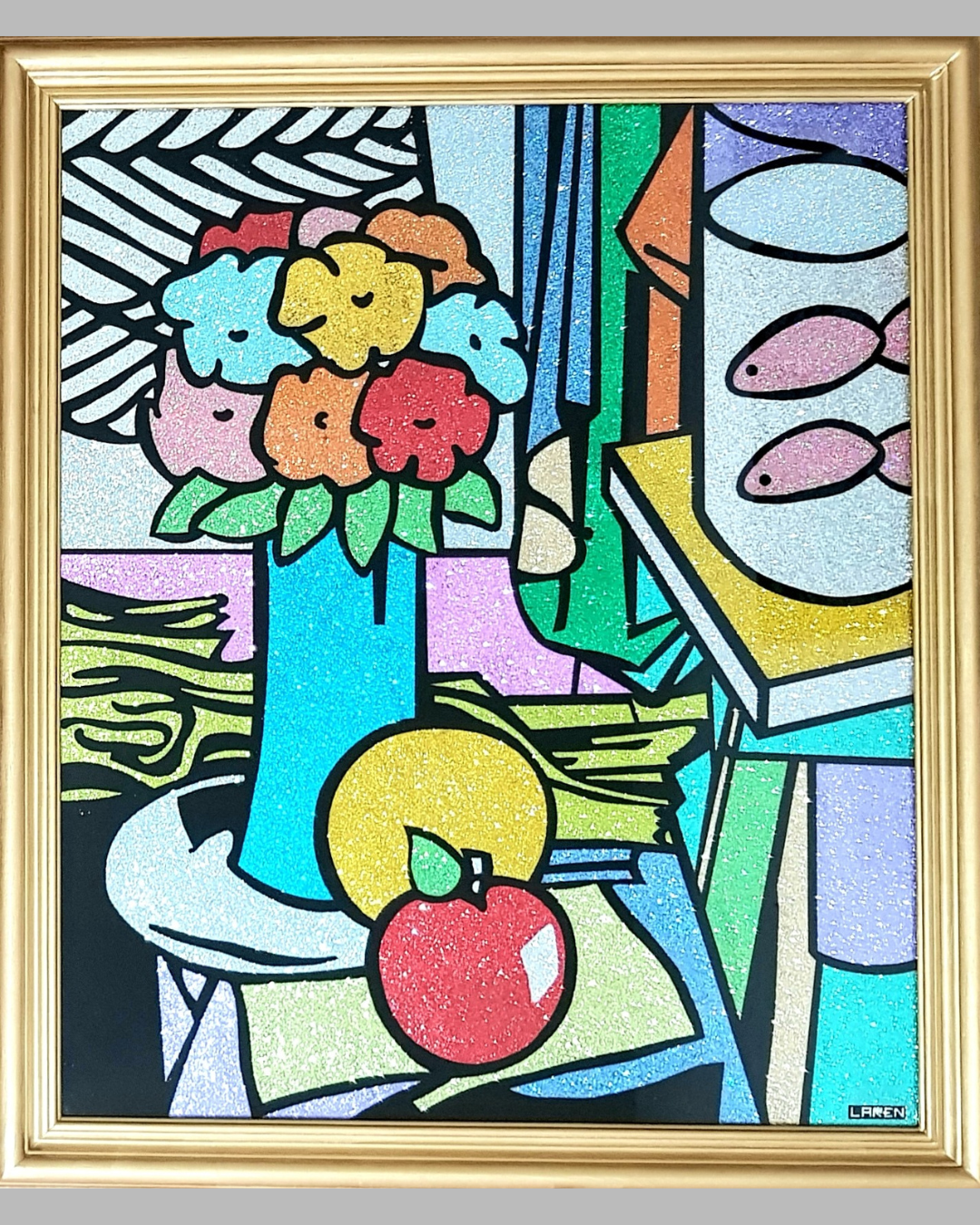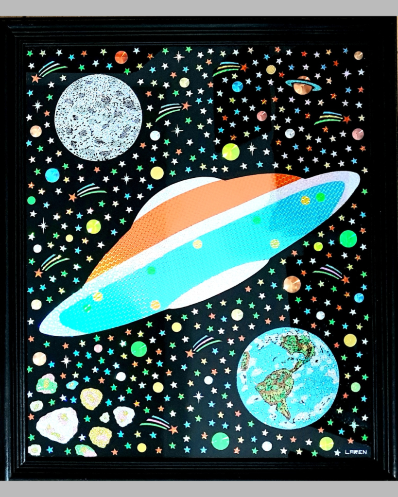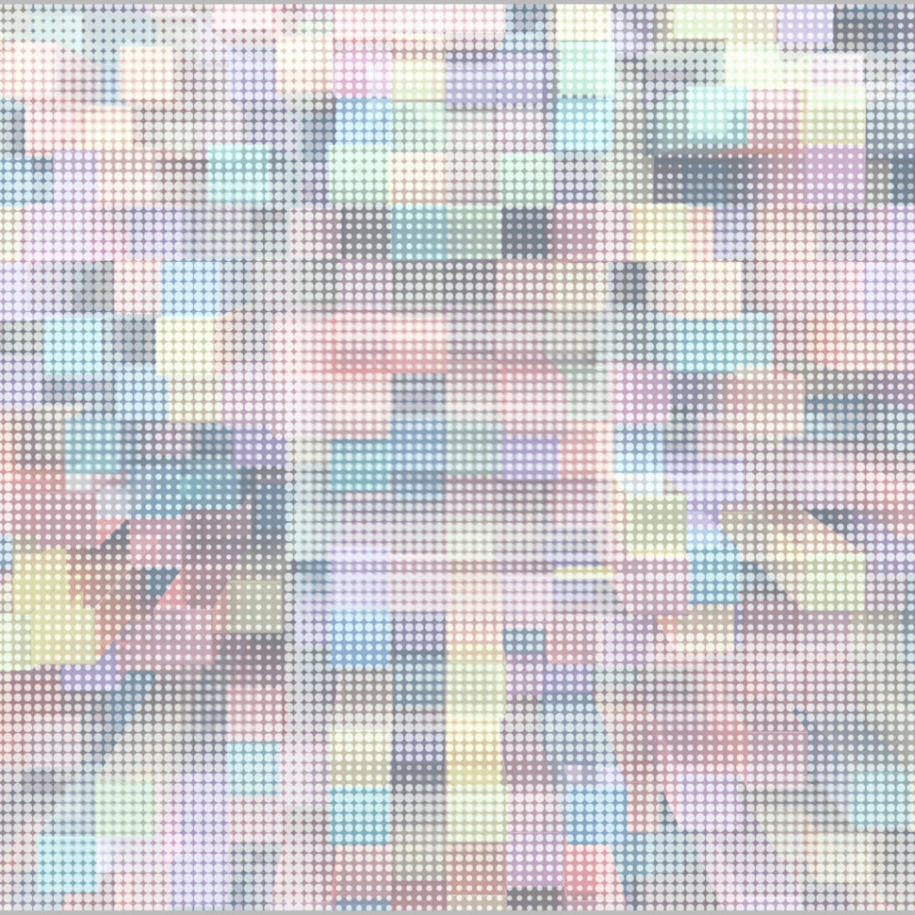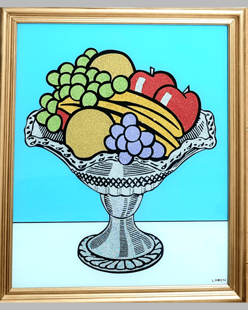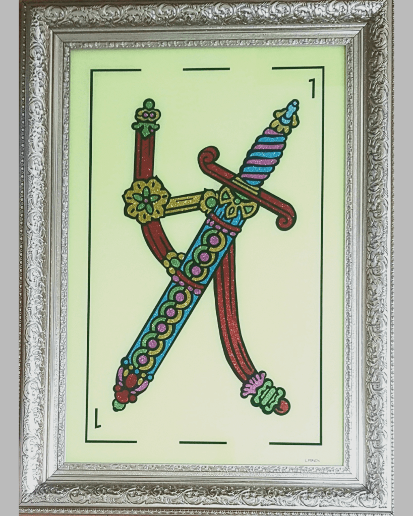 Arte digital, lápices de colores y modelado en vidrio liquido. 1.20×1.20m. 2025. US$ 5.500