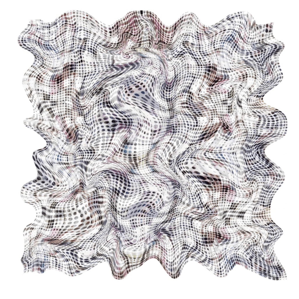 Arte digital sobre lienzo y modelado en vidrio liquido. 1.20×1.20m. 2025. US$ 4.500.