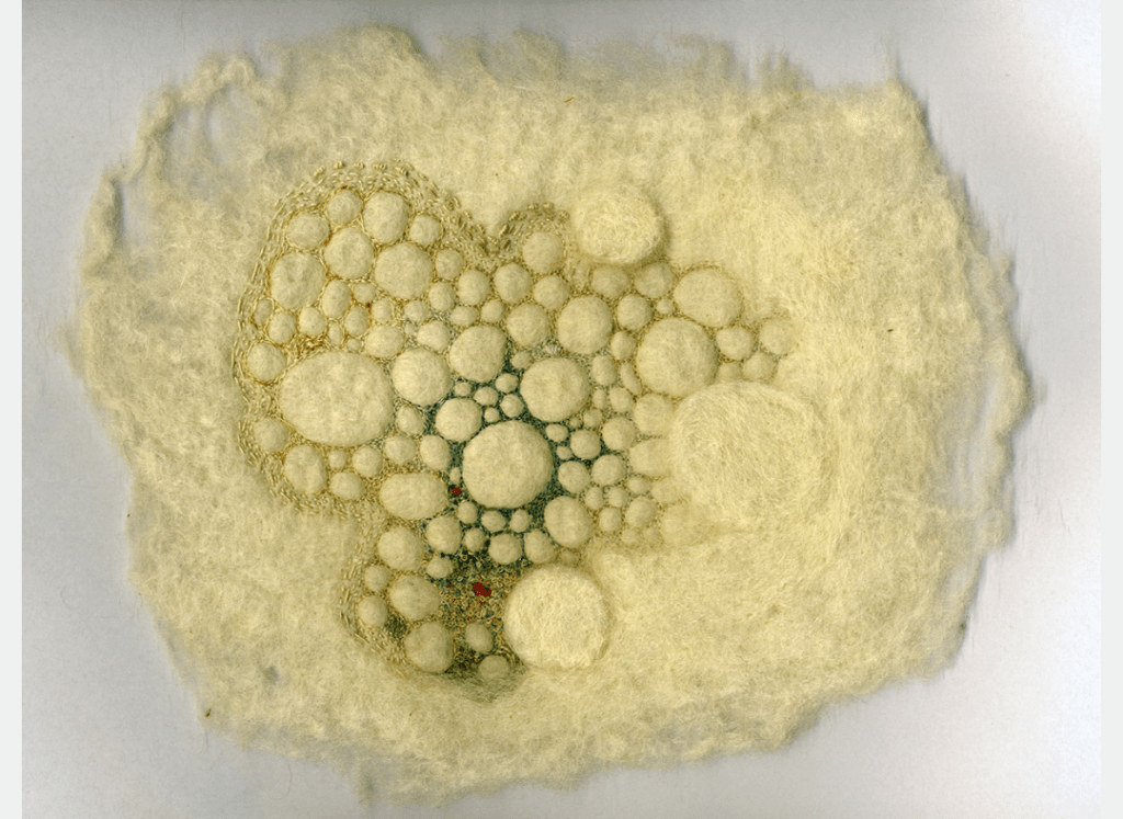 Fieltro húmedo a mano, bordado con hilo de algodón. 18×20 cm (sin marco) 31×24.5cm (con marco) 2021. US$ 700