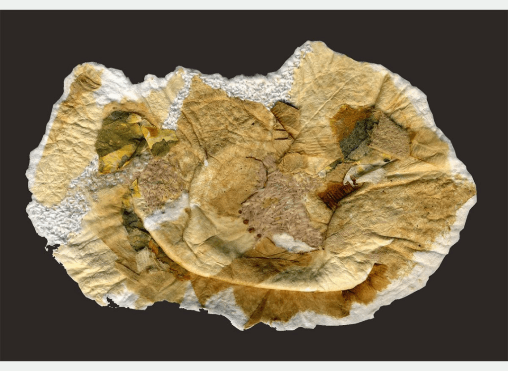 Sacos de té usados, entintado con tinta china, bordado con hilo de algodón sobre papel de algodón a mano. 10×15 cm (sin marco) 31×24.5 cm (con marco) 2023. US$ 700
