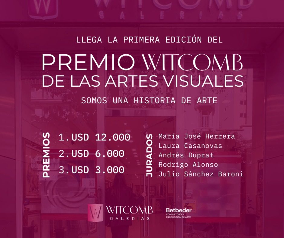 Con importantes premios y un jurado de jerarquía, la Galería Witcomb lanzó la convocatoria que busca nuevos talentos. Witcomb, la galería de arte más antigua del país, fundada en 1868, lanzó el Premio Witcomb de las artes visuales, en el que podrán participar artistas de todo el país entre el 1ro. de octubre y el