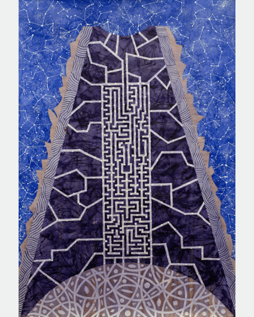 Hilos de ciudad. Dibujo cosido con hilo metalizado sobre papel de algodón. 90×70. US$ 3.000