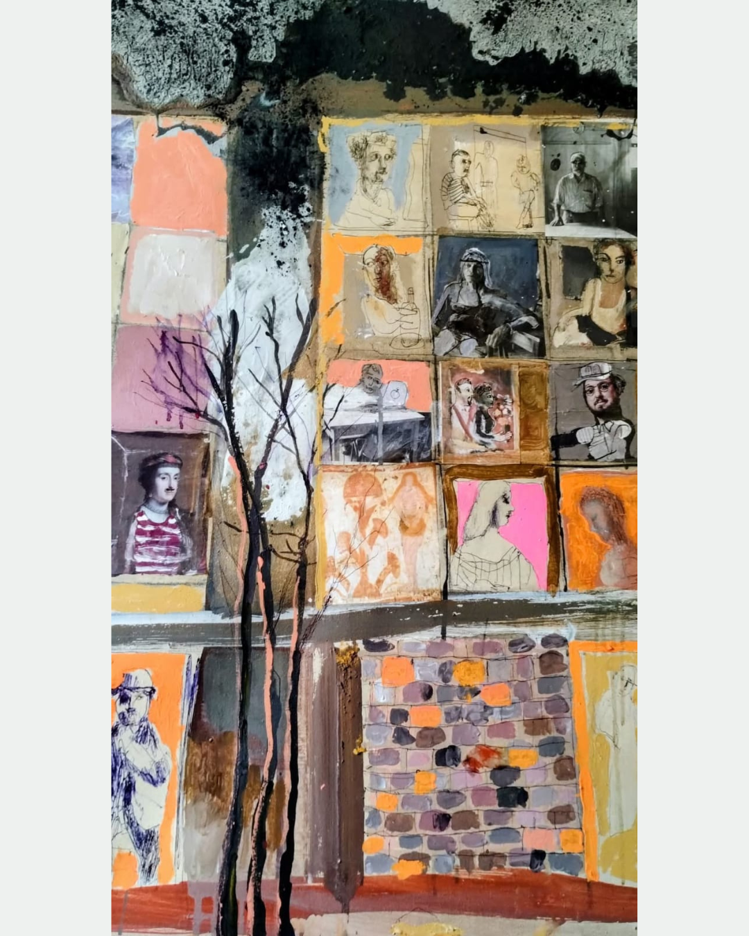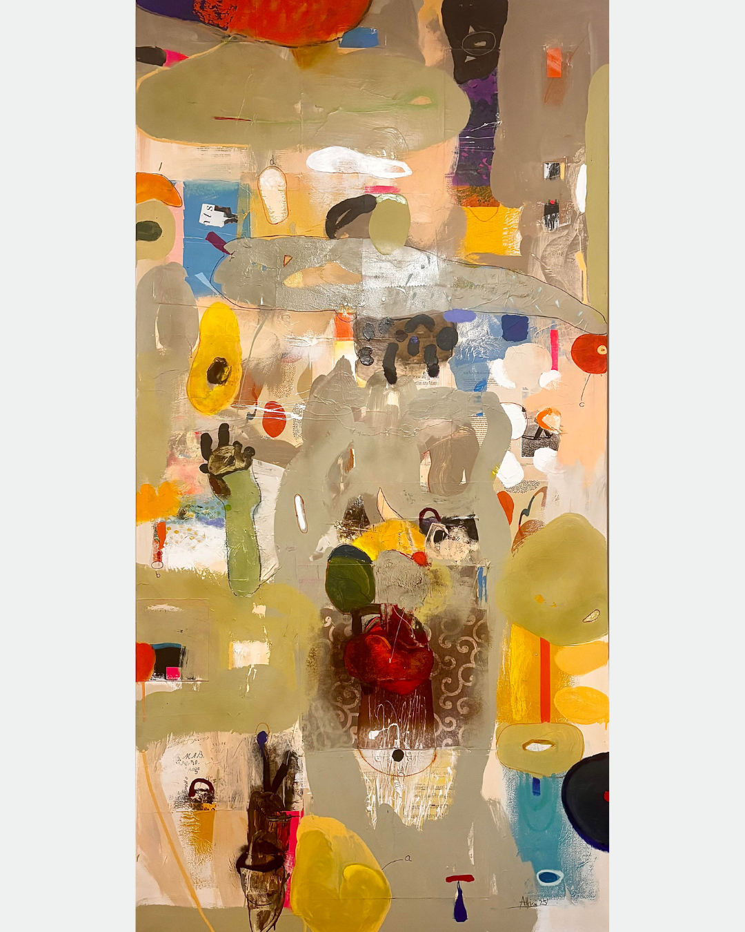 Gran Divertimento. 2025. Mixta y collage sobre tela. 200 x 100 cm. US$ 2.400