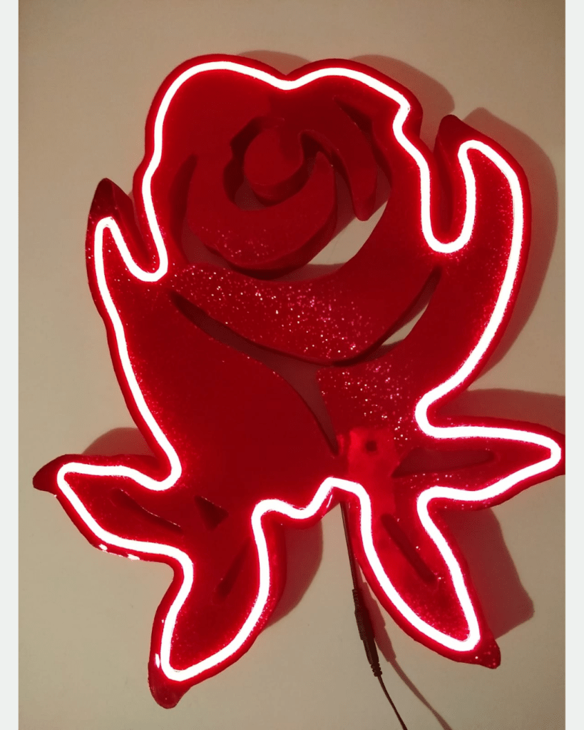 La Rosa y la técnica. Vinilo fantasía sobre foam. La recorre una tira de luces led. 58 x 74 cm. US$ 1.600