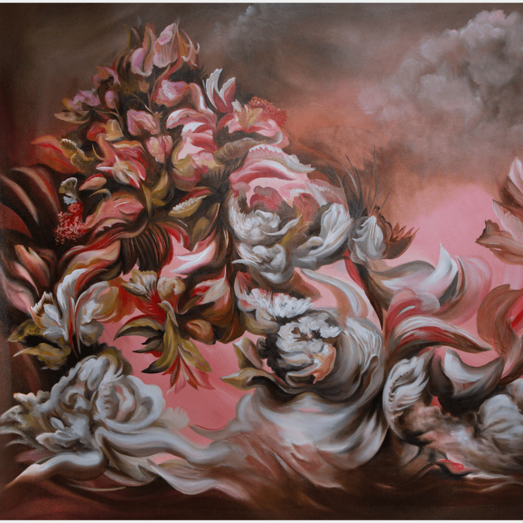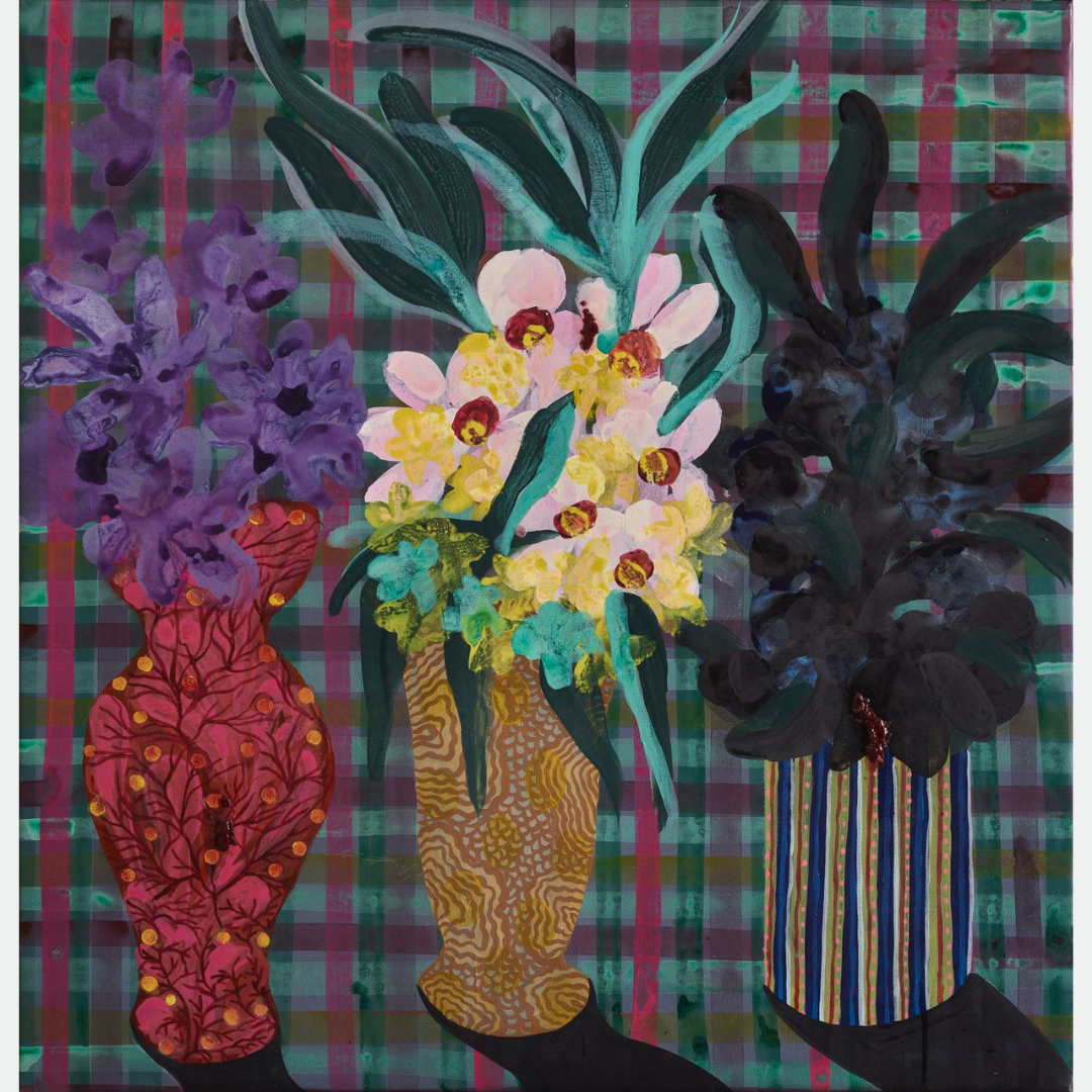 Como me Copola el Jarrón. 2024. Técnica mixta sobre vidrio. 60 x 50 cm. US$ 3.000