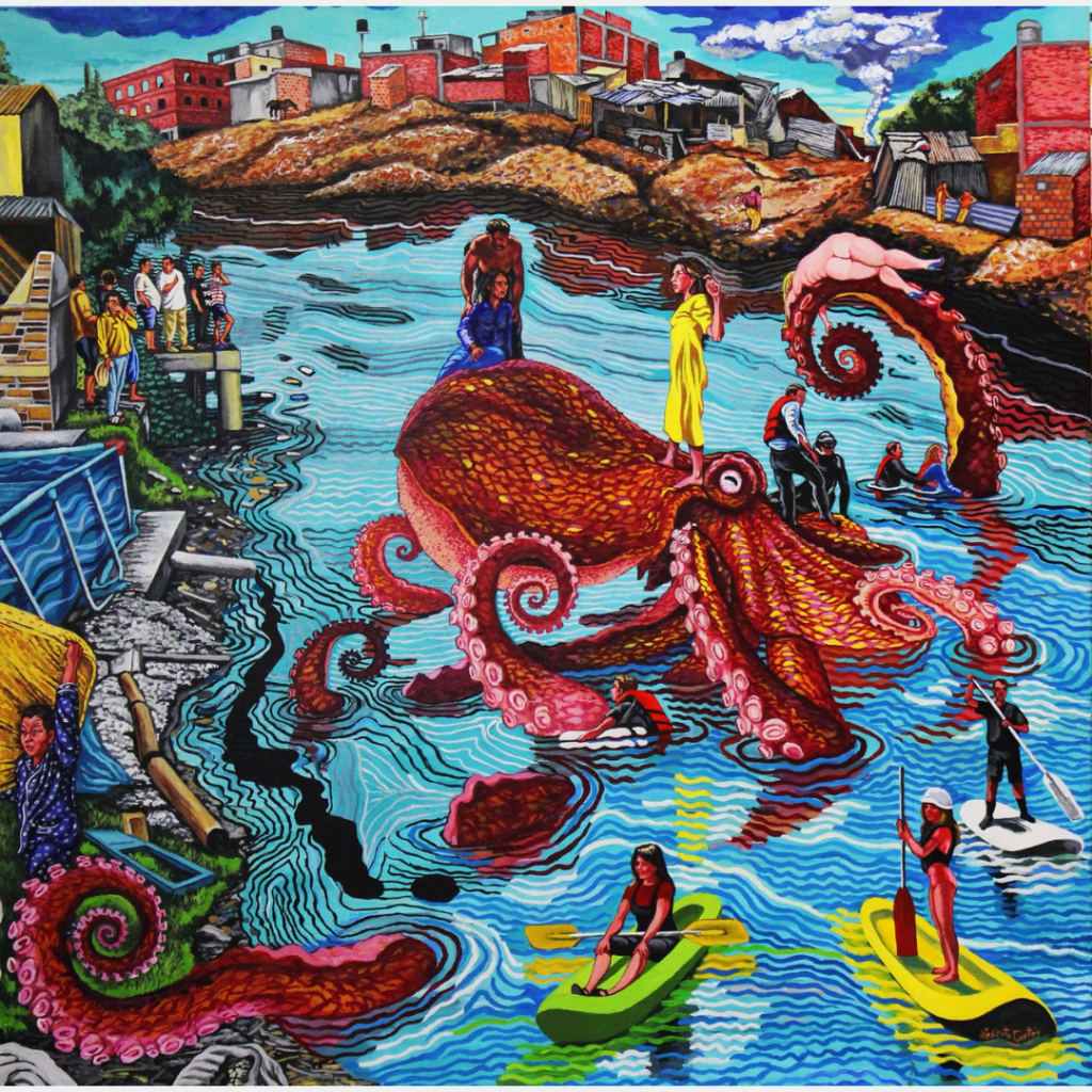 Hay un monstruo en la laguna. 2015. Acrílico sobre tela. 100 x 100 cm. US$ 1.300